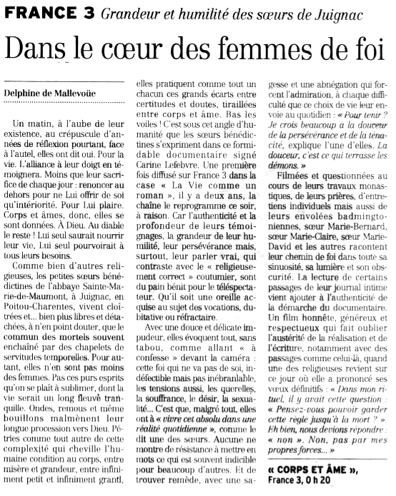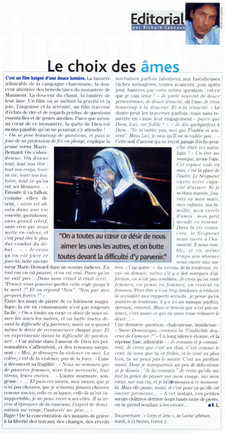 Cloîtrées dans un monastère du sud ouest de la France, deux religieuses bénédictines très jeunes sont sur le point de prononcer leurs vœux définitifs : ce film les accompagne, jour et nuit, et éclaire leur cheminement au moyen de la lecture du journal intime d’une sœur beaucoup plus âgée.
